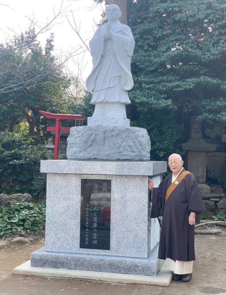 神社・寺院の石物 日蓮大聖人石像 2026.04.16 日蓮大聖人のご着岸を記念した石像の建立事例です。神聖な仏像彫刻として、大聖人の慈悲深い表情や袈裟の柔らかな質感、凛とした所作を石に宿しました。台座部分には由来を記した銘板をはめ込み、後世までその功績を伝える記念碑としての役割も持たせています。地域の信仰の象徴として、末永く親しまれるよう真心を込めて彫り上げました。 実績一覧へ戻る